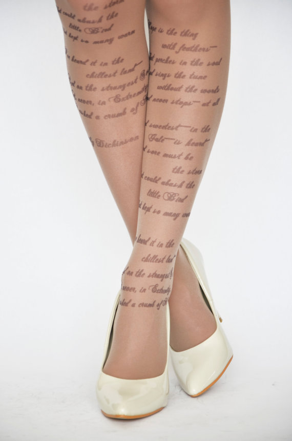 Emily Dickinson tightsPrinted Tights feature the poem Hope by Emily Dickinson.